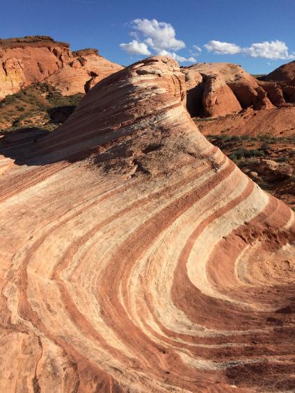The Wave Trail Head is located at parking lot # 3 on the road to White Domes. The hike is 1.2 miles round trip.